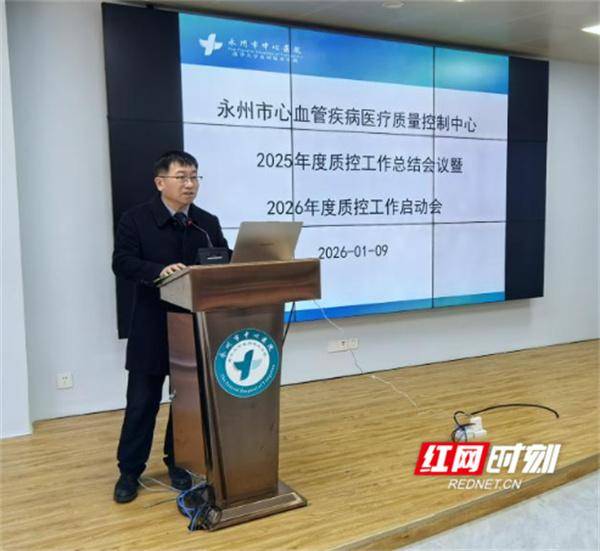 会上,永州市心血管疾病医疗质量控制中心主任,永州市中心医院心血管内科主任龙双祁全面回顾了2025年度在质量控制标准落实、诊疗技术规范化推广、基层能力建设、数据监测与改进等方面取得的显著成果,分析了当前面临的主要挑战与改进空间。2026年将以“提质、增效、协同、创新”为核心方向,重点聚焦于急性胸痛区域协同救治网络的优化、复杂冠心病介入诊疗能力的提升、质量控制指标的精细化管理和心血管健康预防关口前移等关键领域,进一步筑牢全市心血管疾病防治体系。