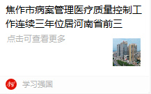 YYVIP易游·(中国有限公司)官方网站-学习强国平台报道:焦作市病案管理医疗质量控制工作连续三年位居河南省前三。