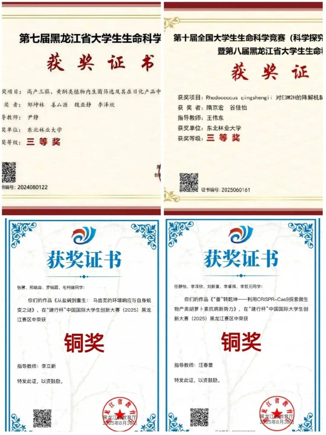 在东北林业大学“学参天地,德合自然”校训的引领下,625的姑娘们深知,优秀绝非仅限卷面成绩。大二起,她们便两两组队,投身不同的科研项目,在实验室里分工协作,共同熬过了无数个等待数据的夜晚,也共同收获了“挑战杯”省赛铜奖等多项荣誉。